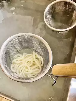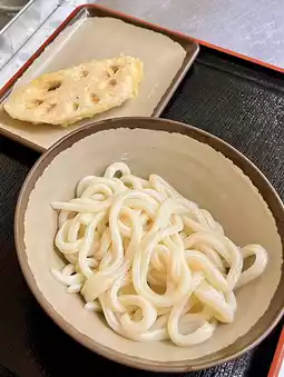 Ueda Handmade Udon, located in Takamatsu City, Kagawa Prefecture, is a highly recommended restaurant with excellent broth. It's a self-service restaurant, so you choose your toppings—fried foods, inari sushi, or rice balls—and then proceed to the register. They'll bring out the bowl containing the udon or soba noodles, where you can pay. You can boil the noodles yourself and add the dipping sauce. You can also add chopped green onions, grated ginger, and tempura flakes as toppings. This time, I ordered a small bowl of warm udon noodles with a side of broth and lotus root tempura. The broth is mild yet robust, making it incredibly delicious. The udon noodles are also incredibly smooth and easy to swallow. I went before noon on a weekday, and it was already crowded, but I was able to get a seat right away. Apparently, there are long lines on weekends, and they sometimes sell out. It's rare to see udon restaurants draining the water, so it was a rare experience, but I thoroughly enjoyed it. I highly recommend visiting. - - - - - - - - - - - - - - - - - - - - - - - - - - - - - - - - - - - - 📍 798-15 Otakamicho, Takamatsu City, Kagawa Prefecture 🚃 Just a 1-minute walk from Kotoden Ota Station