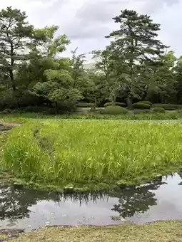 In summary, the ponds and green lotus blossoms of Ritsurin Garden create a picturesque scene, providing visitors with a peaceful haven amidst the busyness of life.