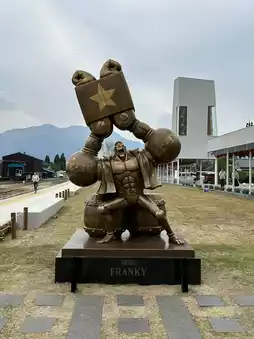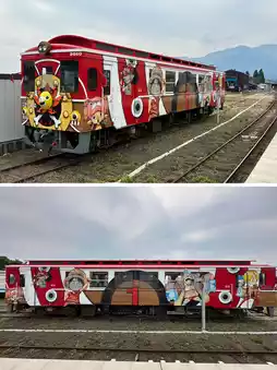 Takamori Station is located very close to the tourist information center, and on this day the One Piece Sunny train of the Kumamoto Reconstruction Project was parked at the station.