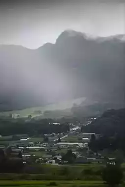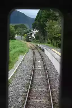 As the journey continues, the scenery gradually opens up, revealing the rolling peaks of the Aso Five Mountains in the distance and verdant fields and villages nearby. Spring brings cherry blossoms along the route; summer sees rice paddies gleaming in the sunlight; autumn paints the rice fields in golden hues; and winter adds a serene beauty with snow-covered landscapes. The atmosphere in the train is relaxed as passengers leisurely enjoy the passing scenery, occasionally listening to railway staff share interesting facts about local attractions.
