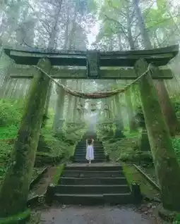 ▪️ Enter *Kamishikimi Kumanoimasu Shrine*, and it's like a "tranquility spell" takes hold! Towering cedars blot out the sky, moss blankets stone lanterns, and when a girl in a white dress passes through the torii, even the sunlight turns gentle ✨ (Personal take: 100x quieter than Kyoto's Fushimi Inari, yet with the same mystical "thousand torii" vibe.)