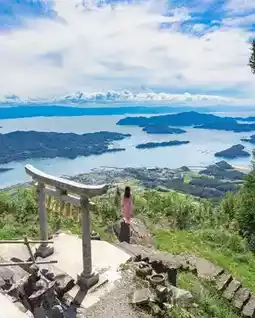 ▪️ Hike up *Kagamiyama Observatory* and just—WOW! A 360° panorama of "puzzle-piece seas and islands": turquoise waters dotted with islets, clouds casting shadows on the waves. More soothing than *Our Little Sister*'s cinematography 🌤️