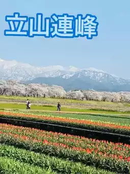 1,200m of about 280 Yoshino cherry trees were blooming along the bank, and in the foreground, it was supposed to be a quartet of tulips, rape blossoms, cherry blossoms, and the Tateyama mountain range, but this year the rape blossoms were late, so it didn't form a quartet, but it was still very beautiful.