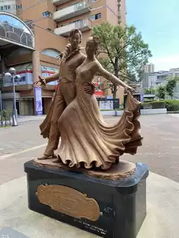 At Hankyu Takarazuka Station, you'll find several photo spots that symbolize the Takarazuka Revue, such as the stairs, the Yume Plaza 'Takarazuka Revue' monument, and the 'Rose of Versailles.' Although I missed it this time, there's also a large feather at the end of platform 4 inside the ticket gates at Hankyu Takarazuka Station. Just being at the station was enough to get me excited.