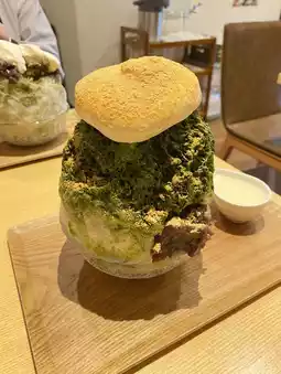 Of course, the ice itself is also delicious. The main part is mildly sweet, but you can adjust the sweetness with the accompanying milk and syrup. The red bean paste is tasty and pairs perfectly with hojicha and matcha. Highly recommended for those who want to enjoy shaved ice in Takarazuka.