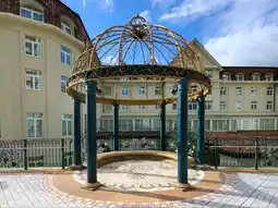 The weather was great, with clear blue skies and the beautiful scenery of Takarazuka all around. Around 9:55 AM, I headed to the hotel. There were already more than 7-8 groups waiting. The lounge is called Renaissance, and the hotel building itself is a perfect embodiment of the Renaissance style.
