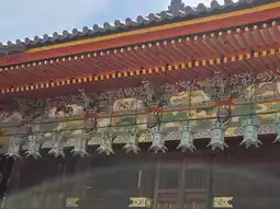 The coffered ceiling, consisting of 135 panels, is decorated with unique designs of cloud dragons, flowers, birds, and Buddhist implements, with no two panels alike.