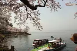 There is a row of cherry blossom trees along the shore of Lake Biwa for about 4km.