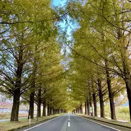 Metasequoia Avenue, situated in Takashima, Shiga, Japan, is renowned for its picturesque rows of Metasequoia glyptostroboides trees, creating a stunning canopy. Planted in 1953, this tree-lined avenue spans approximately two kilometers, attracting visitors with its vibrant foliage during autumn. The Metasequoia, also known as dawn redwood, is a deciduous conifer that adds to the area's natural beauty.