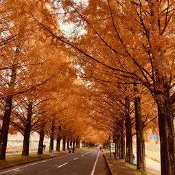 The straight streets and the Metasequoia trees on both sides of the road, whose autumn red leaves are at their best viewing time (photo taken by the author on December 4, 2023), are very spectacular.