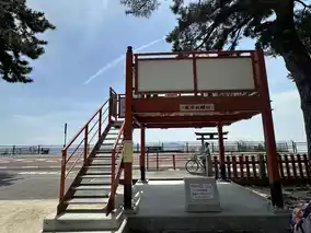There is a major traffic route in front of the Torii, and it is strictly forbidden to cross the national highway for safety reasons.