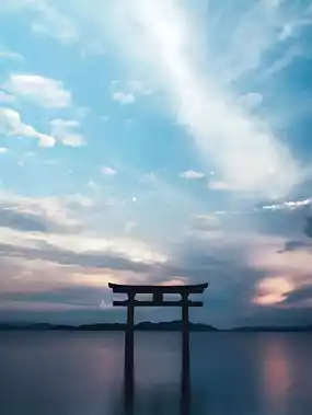 On the shores of Lake Biwa lies a tranquil and ancient shrine, Shirahige Shrine. Known as the "Itsukushima of Omi," it boasts a thousand-year history. In the early morning, the mist still lingers, the lake mirroring the vermilion torii gate, standing alone and dignified, like a portal to another time and space. A gentle breeze ripples the water, reflecting the torii gate, creating a still painting that invites you to slow your breathing and immerse yourself in this otherworldly tranquility.
