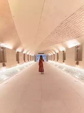 I was particularly surprised by the large scale of the courtyard pyramid, which is based on the Mexican pyramid, the pyramid hall on the second basement floor, and the underground passages.