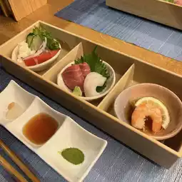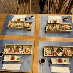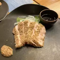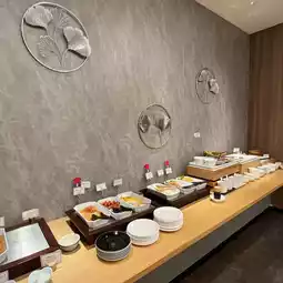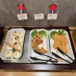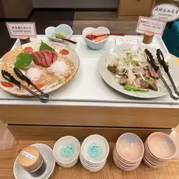 For dinner, it is not a buffet form, one set meal per person. Quite exquisite. The starter has sashimi, salad, and then there is tempura, which in addition to the tempura sauce with carrot puree, also provides matcha salt for ordering the tempura super. The main course was chicken, topped with sesame seeds, next to honey mustard seed sauce, was quite a special way of eating, its meat seemed to be chicken breast, but not tough at all, but it had no taste.
