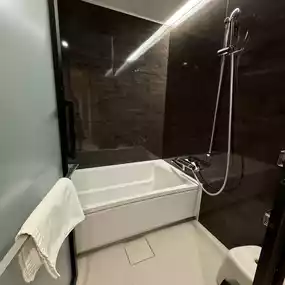 The hotel seems to be renovated from an apartment, and the room is very large. Today we stayed in a four-person room with two double beds and two single bunk beds. It seems that it can accommodate 6 people😆There is a small living room in the room, dry and wet separated bathroom facilities, kettle and induction cooker, tableware, pots and dishes are all available👍🏻We bought fresh Hida beef back to the hotel, fried it lightly, and it was very satisfying😋There is a large supermarket within a 7-minute walk, where vegetables, fruits, beer, soda and snacks can be bought👍🏻