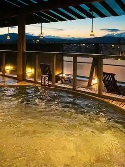 After exploring, retreat to the rooftop onsen, where the Takayama skyline unfolds before you. Soak in the hot springs while sampling a selection of luxurious bath products – bliss! 🛁🌄 When hunger strikes, indulge in the melt-in-your-mouth magic of Hida beef, served in the privacy of your own dining room on the renovated second floor. 🥩🍽️
