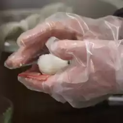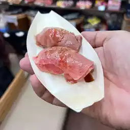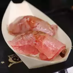 Hida Beef Sushi is freshly made, with the meat slightly burned and then molded into rice. It tastes delicious, fragrant, and has fat in the meat.
