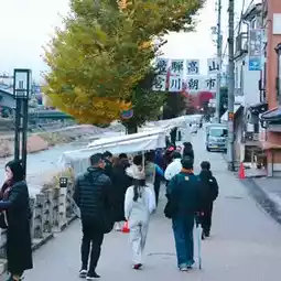 🍣🍓🐮Mikawa Morning Market is a morning market along the Miyagawa River. You can walk from Takayama Station in about 10 minutes.