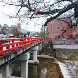 Nakabashi Bridge is located in Takayama City in Hida District, Gifu Prefecture. This old town still preserves the atmosphere of traditional Japan, making it another popular destination for tourists who want to experience the charm of Japan amidst beautiful nature. The bridge stands out due to its deep red color, making it an easy spot to notice. This bridge is also an important symbol of the city, especially in mid-to-late April when cherry blossoms bloom around the bridge, making it one of the most popular cherry blossom viewing spots in Takayama. #tripพาเที่ยวจีน