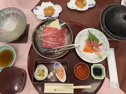 The room is very spacious and has a small living room, making it quite comfortable to live in. Dinner (Figure 4) provides Japanese banquet cuisine, which is eaten like Sukiyaki. You can cook and eat it yourself. The food is small and exquisite and very delicious. The next day's breakfast (Figure 5) was also super rich, with a variety of Japanese side dishes, and you could also grill beef slices yourself. With such a rich meal at every meal, it would be hard not to gain weight.
