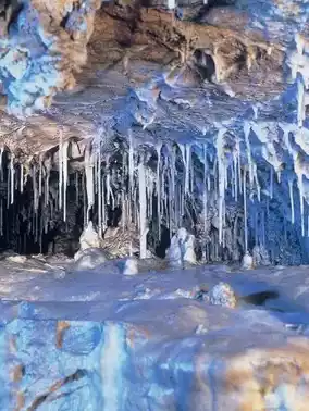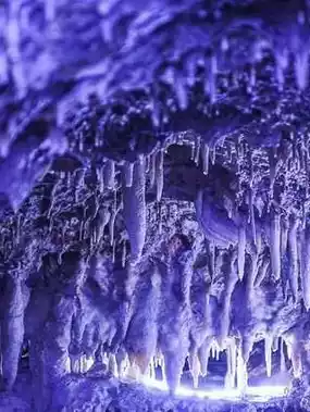 This is a fantastic scene created by many "soda tubes". Soda tubes refer to stalactites that grow from top to bottom like "icicles". Combined with the reflection of the indoor lights, it has a deep blue feeling!