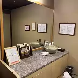 You can wait in line to choose which public bath to use while sitting on the stretched-out chair in the photo.