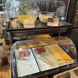 The buffet-style setup allows you to place small plates on a tray and serve yourself, making the breakfast experience convenient and enjoyable.