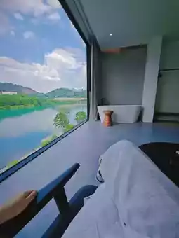 ❄️ The room's windows are large glass panels, the view is very beautiful