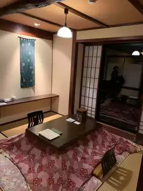 The hotel is also very Japanese in style, renovated from an old house, with a traditional dark color design.