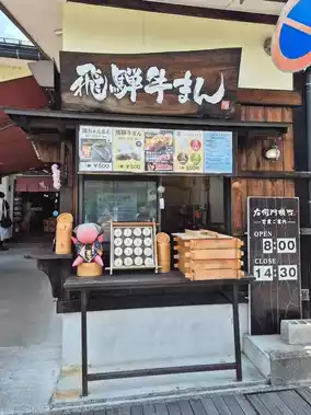 This is a Nikuman with beef. Takayama is famous for its beef. It is fattier than beef from other regions. It costs 500 yen and is a delicious meat bun.