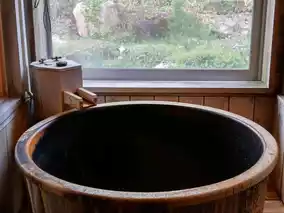The rooms come with private baths, so you can soak anytime you like 👍🏻. Besides the large public bath, there are also several free private hot springs available.