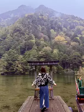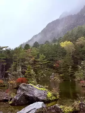 Visited Kamikochi in autumn and it honestly felt like stepping into a fairytale. The valley was wrapped in mist and drizzle, turning everything gold and mysterious. I started at the iconic Kappa Bridge — where legend says a mischievous river spirit once appeared — and watched the fog roll over the Azusa River and surrounding peaks. From there, I followed the riverside trails toward Myojin Pond, a serene spot tucked deep in the forest near Hotaka Shrine. The hike took about 1 hour each way, an easy and peaceful walk with wooden bridges, rustling leaves, and bursts of autumn color at every turn.