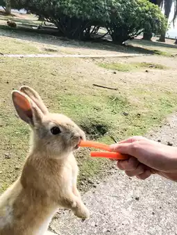Okunoshima Island, floating in the Seto Inland Sea, is a soothing spot also known as "Rabbit Island."