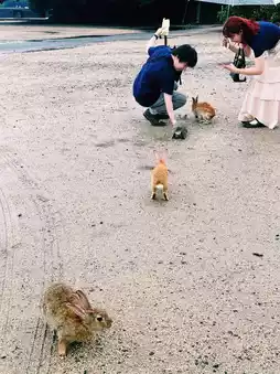 Okunoshima, located in the Seto Inland Sea off Hiroshima Prefecture, Japan, is known as "Rabbit Island." Home to over a thousand wild rabbits, they gradually proliferated after World War II and are now a major attraction. The island is small, and a circular walk takes about an hour. The tranquil environment is free from the hustle and bustle of the city, offering only the sea breeze, forest trails, and flocks of docile rabbits.