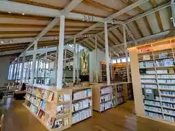 #TakeoCityLibrary, is it considered a famous attraction in Saga Prefecture, Kyushu? Combining a library, bookstore, coffee, and art works, it is a wooden sloping-roof building with round windows on the skylight, which allows for gentle penetration of light and maintains the aroma of books, wood, and Starbucks coffee in the city.