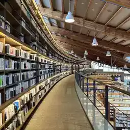 This stylish library with books lined up in an arc on the wall is worth a visit!