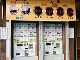 The entrance to Takeo Onsen is the vermilion "Takeo Onsen Tower Gate," designed by the renowned architect Kingo Tatsuno. We skipped the three famous hot springs and found a small, historic-looking onsen near the tower gate. It was our first time seeing a coin-operated machine where we could select the desired bathing temperature. Of course, there were gender-specific restrictions!