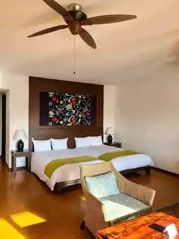 All rooms face the sea, and since it is along the beach, which is also a sea turtle nesting ground, care has been taken to prevent indoor light from reaching the sea at night.