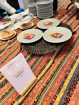 ・Live kitchen offerings like roast beef, brown sugar spare ribs, and shrimp meatballs