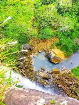 From above the falls, the beautiful ocean stretches out in the direction of Iriomote and Hatoma Island.