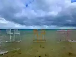 Sitting by the sea with a beer sounds great, but the strong wind makes it challenging to keep plastic items from flying away. I take a quick photo and move to the pool to enjoy my drink. Families are having fun swimming together.