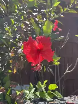 The hibiscus was blooming so beautifully that it would be nice to relax in a cafe while eating ice cream