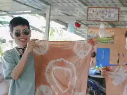 - Create tie-dye fabrics using coconut husks at the Takhian Tia Community Tourism Enterprise.