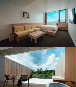 ①Hotel rooms with spacious living space and private hot spring bath with balcony view (155 rooms)