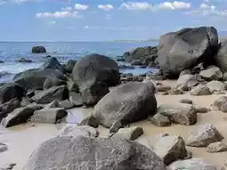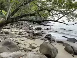 And there's a secret beach at Khao Lak that many people don't know about. It's a beach hidden in Khao Lak-Lam Ru National Park. The inside is quite quiet and peaceful. The beach is beautiful, rocky, and there are a lot of crabs. If you want to take pictures and see the nature of the crabs, you have to stop by.