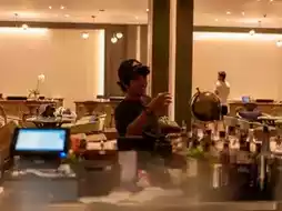 The restaurant is located downstairs in the lobby. It serves breakfast, lunch and dinner.  Another restaurant is near the beach. It serves pizza and seafood. Some days, there are shows at night.