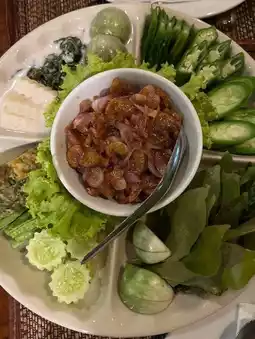 The second dish, I’d like to praise the shrimp paste chili sauce. This restaurant has a lot of shrimp, and the flavor is strong (my husband said it was a bit too spicy, but I think it’s just right with vegetables and rice). But the best dish for me is the “boiled vegetables with coconut milk”!! You know, this is my all-time favorite. When my sister brought it to the table, I saw it and exclaimed, “Hey! It’s amazing! Oh my! I really want to eat this!!” I finished it all and added other boiled vegetables to the remaining coconut milk. 555