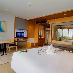 The room is very spacious, overlooking the swimming pool, all bedding is good