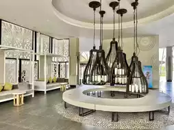 Here, you can see both the mountain and the sea view. The beach is long, clean, and the sand is fine. The beach in front of the hotel is very beautiful. It is black sand. There are lounge chairs and several swimming pool areas. If anyone wants to come and relax quietly, there is also an Adult Zone pool. Nearby, there is a petanque court, giant chess, a snooker table, a large water park, and a slide for children to have fun from morning until night without getting bored. There is also a kids club for the little ones.