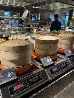- **Dim Sum Station 🥟**: Includes steamed buns and a chef who can whip up stir-fried soy sauce noodles or yellow noodles.